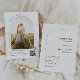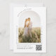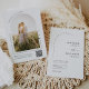 Wedding invitation featuring a simple arch frame and design. Backside with Photo and QR Code to RSVP. Customise with your information. Click "click to customise further" to change the font style, size or colour.