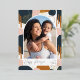 A modern boho-style Kwanzaa holiday card design featuring a single vertical or portrait-oriented photo in an arched layout, on a background of organic shapes in shades of navy, cinnamon, taupe, and blush. "Happy Kwanzaa" appears beneath in hand lettered script. Personalize with your family name for the perfect finishing touch to these beautiful holiday photo cards.