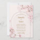 Boho arch watercolor soft pink cherry blossom gold invitation