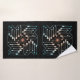 This Aztec-inspired bath towel pattern has a chic Boho vibe with a geometric arrangement of arrows around a blazing sun shape. This version has a gradient colour scheme ranging from turquoise through white and blush pink all on the background colour of your choice (the black shown here is optional). Search ID748 to see other colour options and products with this pattern.