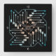 This Aztec-inspired wall clock pattern has a chic Boho vibe with a geometric arrangement of arrows around a blazing sun shape. This version has a gradient colour scheme ranging from turquoise through white and blush pink all on the background colour of your choice (the black shown here is optional). Search ID748 to see other colour options and products with this pattern.