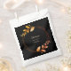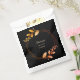 Set against a striking black background, this favour bag features apricot-coloured text that provides a warm and inviting touch. Delicate leaves in soft muted earth tones and earthy autumnal copper shades evoke the cosy charm of autumn, while the geometric frame in burnt orange and terracotta adds a rustic yet sophisticated flair. This favour bag perfectly complements your autumn-themed wedding, capturing the essence of a bohemian chic celebration. This favour bag radiates warmth and elegance, reflecting the romantic and modern minimalism of your special day.