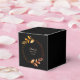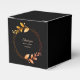 Set against a striking black background, this favour box features apricot-coloured text that provides a warm and inviting touch. Delicate leaves in soft muted earth tones and earthy autumnal copper shades evoke the cosy charm of autumn, while the geometric frame in burnt orange and terracotta adds a rustic yet sophisticated flair. This favour box perfectly complements your autumn-themed wedding, capturing the essence of a bohemian chic celebration. This favour box radiates warmth and elegance, reflecting the romantic and modern minimalism of your special day.