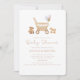Celebrate the parents-to-be in style with this elegant minimalist boho baby shower invitation featuring hand-drawn watercolor illustrations of a teddy bear, wooden stroller, balloons, and rocking horse. The soft neutral tones make it perfect for any gender, and the clean, modern layout adds a premium touch. Fully customisable – ideal for those looking for a classy and timeless design to mark a special day.