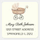 These cute 1.5" square address stickers are designed with an ivory background, vintage wicker baby buggy and black script and modern typography lettering. Easily change text to make it yours using the simple Template provided. Minimum purchase is one sheet of 20 stickers. Printed on white acid-free paper. Vibrant full-colour, full-bleed printing. See "About This Product" at side more information.