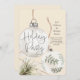 A gathering of boho baubles headlines this boho style holiday party invite.