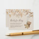 Bohemian bear baby shower invitations featuring a light brown background, a vintage watercolor baby bear, balloons, rustic boho pampas grass & florals, plus a modern 'books for baby' template that is easy to personalise.