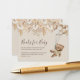Bohemian bear baby shower invitations featuring a light brown background, a vintage watercolor boy baby bear, balloons, rustic boho pampas grass & florals, plus a modern 'books for baby' template that is easy to personalise.