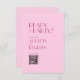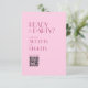 The design showcases a calming light pink background that evokes the romance of your special day. Its minimalist aesthetic embodies simplicity and understated elegance, with fonts elegantly rendered in captivating shades of viva magenta, adding a touch of vibrancy and sophistication. At its core, you'll discover unique RSVP codes, thoughtfully integrated for your guests' convenience. These codes can be effortlessly scanned, simplifying the RSVP process while preserving the retro charm of the design.