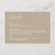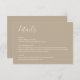 This modern boho beige wedding details card features a minimalistic design with an earthy, boho beige colour and clean, modern typography. Coordinating wedding suite is available.