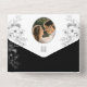 Embark on a journey of timeless elegance with our all-in-one black and white wedding invitation, blending classic sophistication with modern bohemian flair. Adorned with vintage silver floral lace and the couple's monogram, this invitation exudes refined charm. Your picture graces the front, while inside, discover the details of our celebration and an RSVP, completing this invitation to a day as unforgettable as your love.