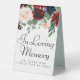 This table tent sign is the perfect size for our tables and easy to read. I also like the material it is made with and no worries about it falling or sliding. Just perfect! Everything about this card is perfect. I like that it says what we want on the front and on the back we were able to personalize a message for our guests.
