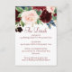 Radiant sophisticated hand-painted garland wedding reception, shower, or party guest hotel accommodation and details invitation suite insert featuring a burgundy marsala red and blush pink watercolor header drop border with navy blue accent flowers embellished by botanical laurel and dark red. From the "Boho Bloom" collection, this gorgeous layout features rich Bohemian wildflowers with radiant blooms and eucalyptus greenery foliage. For other colours or matching products, please visit the JustFharryn Zazzle store, or contact the designer, c/o Fharryn@yahoo.com All rights reserved. #bohochic #zazzlemade