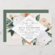 Elegant floral baby shower invitation features a diamond shaped frame of watercolor flowers and foliage in boho desert inspired shades of peach, white, ivory, and sage green on a warm off white background. Personalise with your baby shower details.