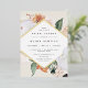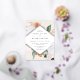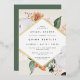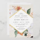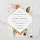 Elegant floral bridal shower invitation features a diamond shaped frame of watercolor flowers and foliage in boho desert inspired shades of peach, white, ivory, and sage green, and finished with gold foil trim. Personalise with your bridal shower details.