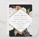 Elegant floral bridal shower brunch invitation features a diamond shaped frame of watercolor flowers and foliage in boho desert inspired shades of peach, white, ivory, and sage green, and finished with gold foil trim. Personalise with your bridal brunch details.
