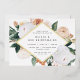 Elegant floral bridesmaids luncheon or brunch invitation features a diamond shaped frame of watercolor flowers and foliage in boho desert inspired shades of peach, white, ivory, and sage green, and finished with gold foil trim. Personalise with your bridesmaids brunch or luncheon details in modern lettering.