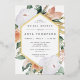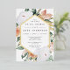 Elegant floral bridal shower brunch invitation features an elongated hexagonal frame of watercolor flowers and foliage in boho desert inspired shades of peach, white, ivory, and sage green, and finished with gold foil trim. Personalise with your bridal brunch details in modern lettering.