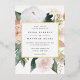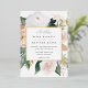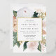 Elegant floral wedding invitation features your wedding details in modern lettering, set in a square frame of pastel watercolor flowers and botanical foliage in desert inspired earth tone shades of peach, sage green, white and ivory. Gold foil trim completes the look for a luxe touch.