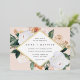Elegant floral wedding invitation features your wedding details in modern lettering, set in a geometric diamond shaped frame of pastel watercolor flowers and botanical foliage in desert inspired earth tone shades of peach, sage green, white and ivory. Gold foil trim completes the look for a luxe touch.