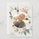 Elegant floral photo graduation announcement features a round photo framed by watercolor flowers and foliage in boho desert inspired shades of peach, white, ivory, and sage green. Personalise with your graduate's name, class year, and school. Add a personal message to the back, along with an additional photo.