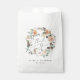 Boho chic event or wedding favour bags say thank you to guests in elegant style. Bags feature a watercolor wreath of sage green botanical foliage and pastel earth tone flowers in shades of peach, ivory, and white, framing "thank you" in calligraphy script lettering. Personalise with your names or event name and date beneath in modern lettering. Designed to coordinate with our Boho Blooms wedding and event collection.