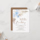 Elegant any age boho themed adult birthday invitation featuring a blue, white and natural tones floral arrangement with pampas grass. The calligraphy heading is an image that can be removed. The back of the invitation is terracotta in color however the color can be altered.