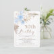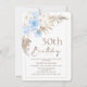 Boho Blue Brown Floral Pampas Grass Birthday Invitation