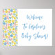 Boho Blue Yellow Ditsy Floral Custom Baby Shower Welcome Sign Poster