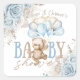 Boho Blue Floral Pampas Teddy Bear Boy Baby Shower Square Sticker