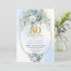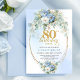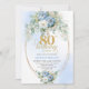 Boho Blue Floral Peony Gold Frame 80th Birthday Invitation