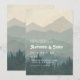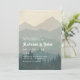 Boho Blue Forest Mountains Retro Wedding Invitation