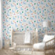 Boho Blue Llama Rainbows Baby Boy Nursery Wallpaper