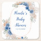 Boho Blue Pampas Grass Baby Shower Square Paper Coaster