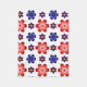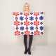 This fleece blanket features a beautiful colorful floral pattern of blue, purple and red stylized daisies against a white background; perfect for adding a touch of retro cuteness to your home.