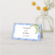 Wedding with Blue Tile and Lemon Arch table number place card with a modern script font that states "table" and a blank line where you can put in the table number and the guest's name for your wedding. On the back, you can include the names of the bride and groom.