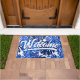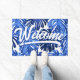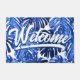 Boho Blue White Tropical Leaves Script Welcome Doormat