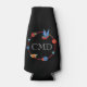 Black bottle cooler features Boho tattoo style bluebird wreath with centre personalised modern monogram