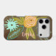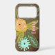 A modern floral personalised your name or quote iphone case. Blooming bouquet with pink and coral Flowers and Teal Blue Green Leaf, Ferns, Leaves, Acorns, Greenery and such.
