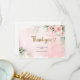 Boho blush pink floral green eucalyptus gold oval baby shower thank you card