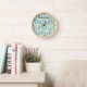 Boho Bohemian Distressed Teal Feather Pattern Wall Clock