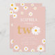 Boho Bohemian Retro 70s Pink Daisy 2nd Birthday Invitation