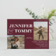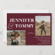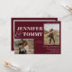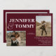 Boho bold names retro 3 photos wedding red burgundy with 3 photo collage and an ampersand script.