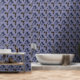 Boho Botanical Flower Pattern Blue Wallpaper