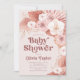 Dried palm leaves, orchids and peonies baby girl shower invitation. Beautiful boho style design with hand painted botanical accents. Features watercolor tropical flowers, orchids, peonies, dried palm leaves, pampas grass and trendy retro typography script font. You can choose printed invitations and/or instant download digital template. Perfect for a stylish baby shower celebration.