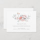 This delicate botanical wedding reception insert card features shades of coral, peach, pink, grey and blue grey, and has plenty of leaves, flowers, and accents.