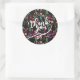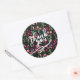 Boho Botanical Watercolor Flowers Black Classic Round Sticker