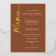Boho Brown Terracotta Gold Foil Script Menu Card