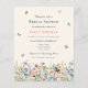 This is a boho and budget friendly rustic and whimsical bridal shower invitation. The design features a colourful and delicate field of summery wildflower florals in pretty shades of blue, terracotta, pink, purple and yellow. The butterflies and bees add the finishing whimsical and pretty touch.