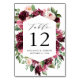 Boho Burgundy & Blush Watercolor Floral Wedding Table Number